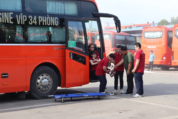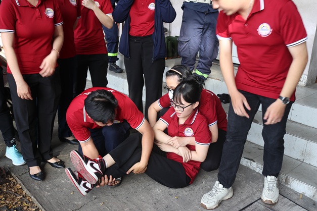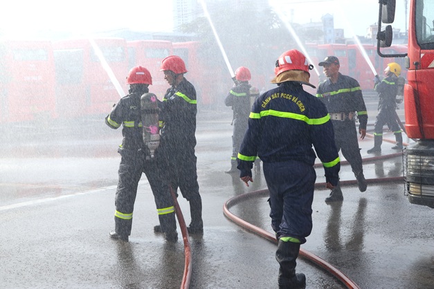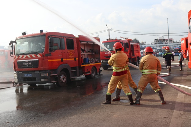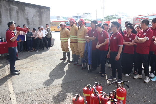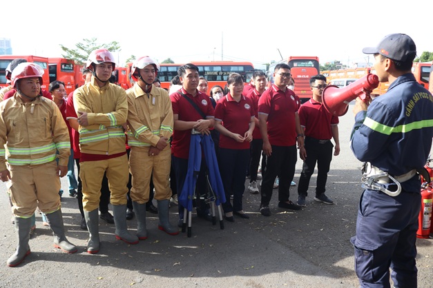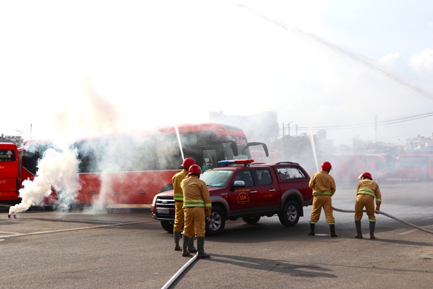 Tình huống giả định là cháy xe đang đậu trong bãi đậu xe chờ tài, nguyên nhân do chập điện bình ắc quy. Đám cháy lan rộng, tỏa nhiệt lớn và khói độc làm cho 03 người ngất do ngạt khói. Tổ cứu nạn cứu hộ tại chỗ đã triển khai đội hình cấp cứu đưa nạn nhân ra khu vực an toàn. Khi thấy cháy, nhân viên bảo vệ lập tức truy hô và báo cháy. Lực lượng chữa cháy tại chỗ của Công ty đã phối hợp cùng Đội Chữa cháy và CNCH Khu vực 09 dập tắt hoàn toàn đám cháy.