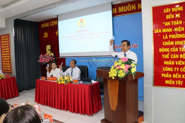 Ngày 18/11/2025, được sự đồng ý của Đảng ủy, Tổng Giám đốc Công ty và Ban Thường vụ Công đoàn Tổng Công ty, Công đoàn cơ sở thành viên Công ty Cổ phần Bến xe Miền Tây đã long trọng tổ chức Đại hội Đại biểu lần thứ VII, nhiệm kỳ 2025–2030 nhằm tổng kết, đánh giá phong trào và hoạt động Công đoàn trong nhiệm kỳ qua, đề ra phương hướng, nhiệm vụ và giải pháp cho giai đoạn tới, đồng thời phát huy tinh thần dân chủ để bầu Ban Chấp hành nhiệm kỳ mới có đủ phẩm chất, năng lực.