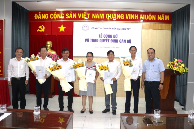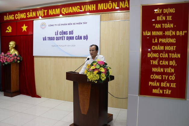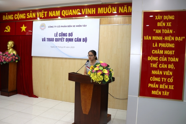 Chiều ngày 29/9/2025, Công ty Cổ phần Bến xe Miền Tây đã trang trọng tổ chức Lễ công bố quyết định về công tác cán bộ với sự hiện diện của cán bộ chủ chốt Công ty, tổ/ca trưởng, tổ/ca phó các phòng.
