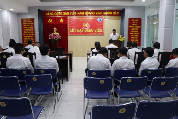 Thay mặt Chi ủy, đồng chí Lê Ngọc Đoan – Bí thư chi bộ phòng Kinh doanh Dịch vụ đã đọc và trao Quyết định kết nạp Đảng viên cho đồng chí đảng viên mới. Quyết định này là sự ghi nhận cho những nỗ lực không ngừng trong quá trình học tập, rèn luyện và phấn đấu của đồng chí trong suốt thời gian qua.