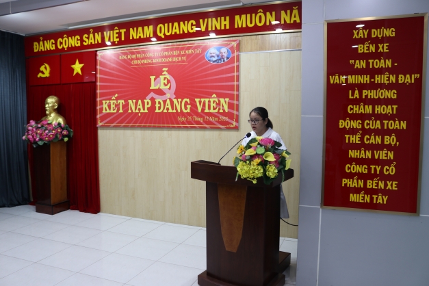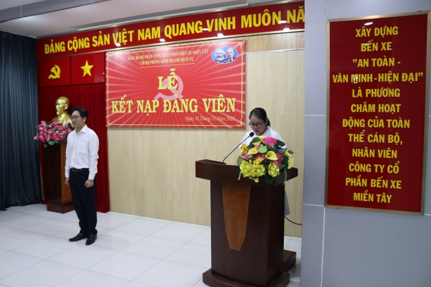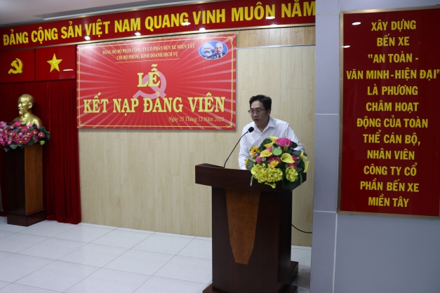 Ngày 25 tháng 12 năm 2025, Đảng ủy Công ty Cổ phần Bến xe Miền Tây đã trang trọng tổ chức Lễ kết nạp đảng viên mới cho quần chúng ưu tú Võ Hoàng Minh, thuộc Chi bộ phòng Kinh doanh Dịch vụ sau một thời gian rèn luyện, phấn đấu và được tập thể tín nhiệm giới thiệu. Đây là sự kiện có ý nghĩa quan trọng trong công tác xây dựng và phát triển Đảng của Chi bộ, góp phần bổ sung lực lượng trẻ, có trình độ, nhiệt huyết cho Đảng.