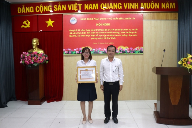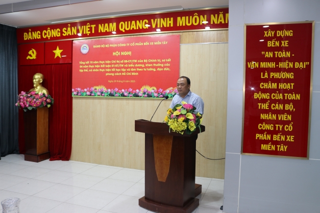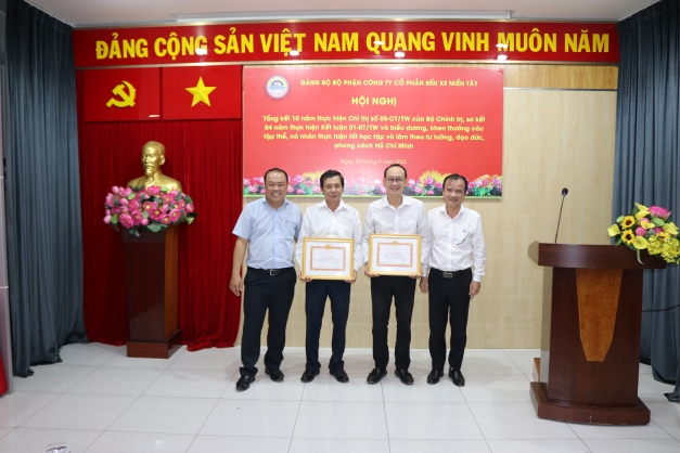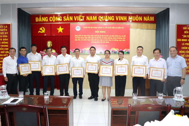 Ngày 29 tháng 9 năm 2025, Đảng ủy Công ty Cổ phần Bến xe Miền Tây long trọng tổ chức Hội nghị tổng kết 10 năm thực hiện Chỉ thị số 05-CT/TW của Bộ Chính trị, sơ kết 04 năm thực hiện Kết luận số 01-KT/TW và biểu dương, khen thưởng các tập thể, cá nhân tiêu biểu trong học tập và làm theo tư tưởng, đạo đức, phong cách Hồ Chí Minh với sự hiện diện của đồng chí Nguyễn Văn Thành – Phó Bí thư Đảng ủy, Tổng Giám đốc Công ty cùng các đồng chí Đảng ủy viên, các đồng chí BCH các chi bộ trực thuộc.